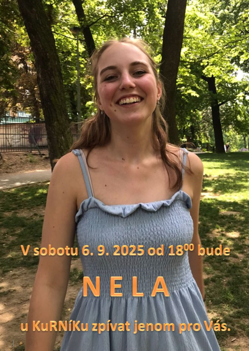 V sobotu 6. září zazpívá od 18:00 hodin v Mečově v KuRNíKu zpěvačka NELA. Přijďte si poslechnout.