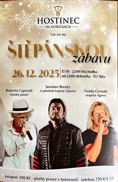 pátek 26. prosince 2025 od 17:30 - společenský sál v Hostinci na Hořičkách