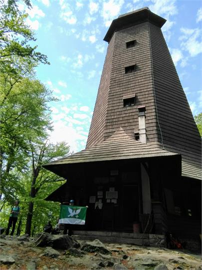 Vlajka u paty rozhledny na hoře Velký Blaník 638 m n.m., Louňovice pod Blaníkem
