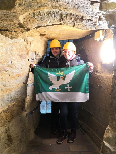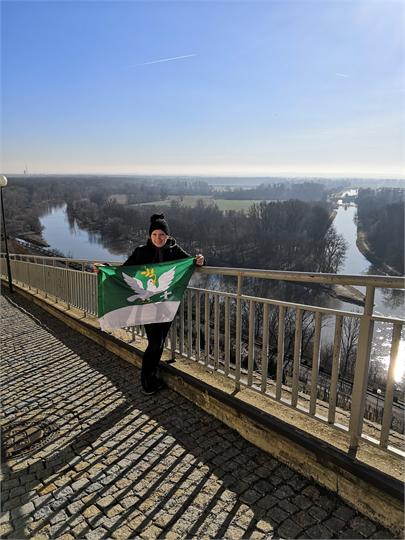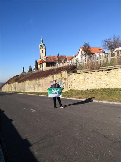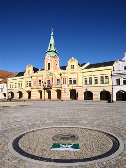 vlajka Hořiček u nejširší studny (4,54m) v České republice na náměstí v Mělníku, Mělník