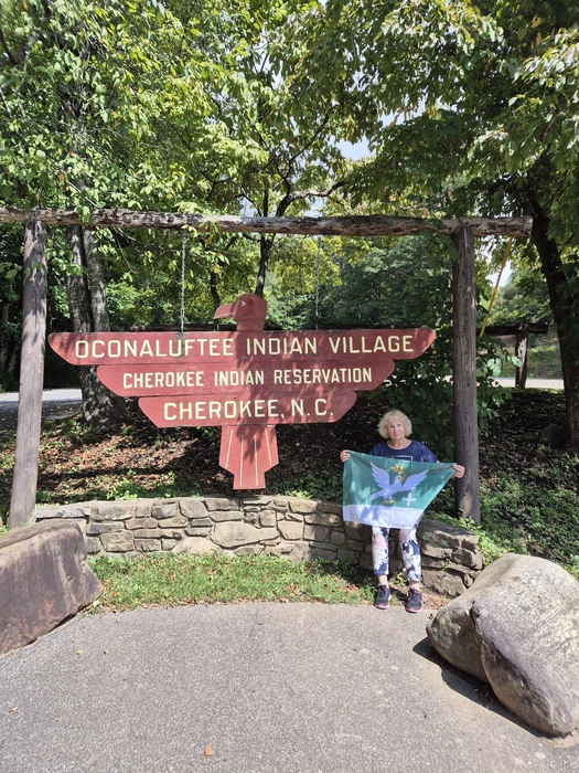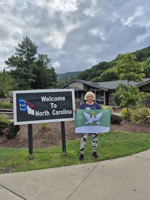 V Americe je všechno velké. Vlajka Hořiček se krčí u paty billboardu na hranicích Utahu (v pozadí známé monumenty), USA.